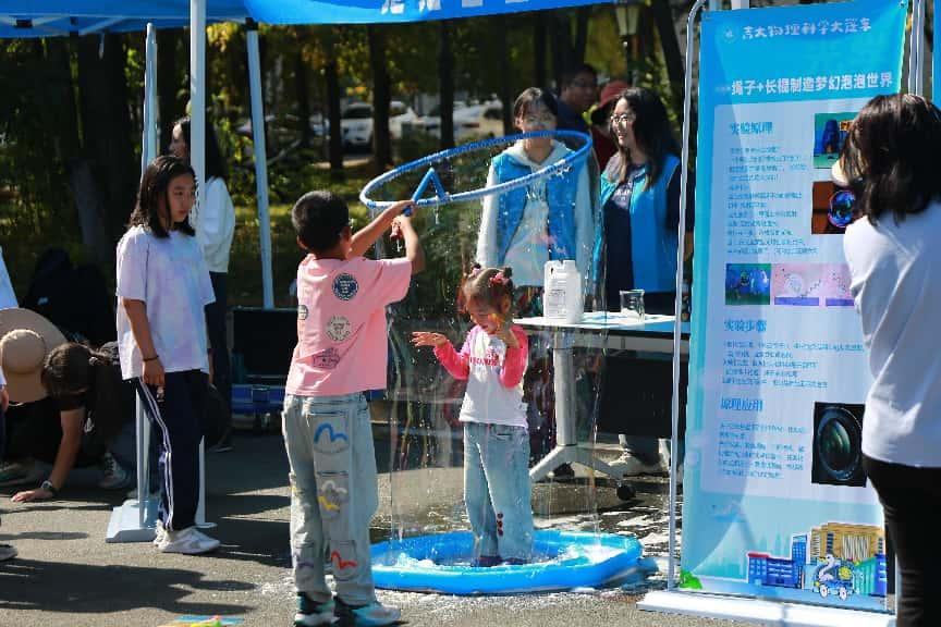 作为文化节的重头戏,户外物理嘉年华在物理楼前同步展开,设有四大主题体验区,打造了一场融合科学深度与趣味互动的科普游园会: